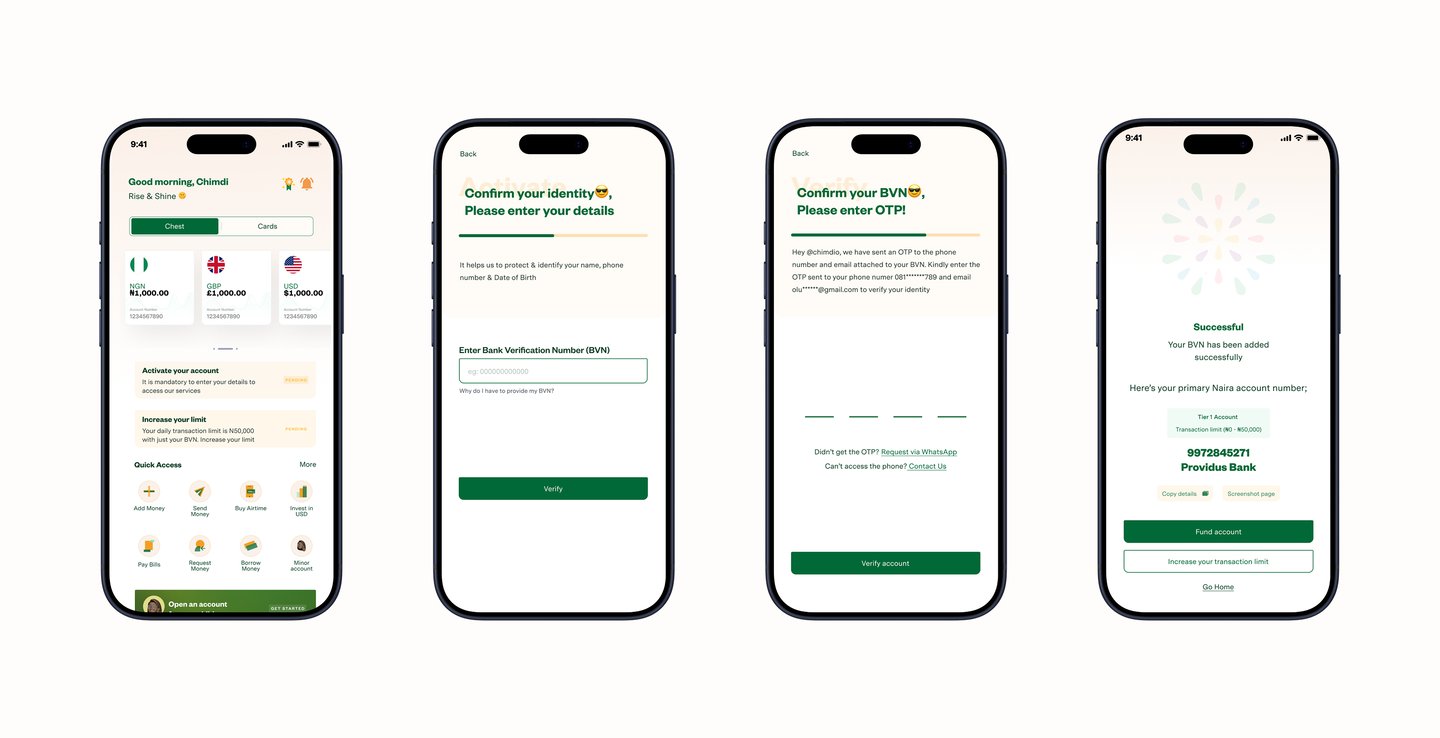 After much delibrations and research exploring what was obtainable within the market, we decided to remove the BVN process from the onboarding phase to the app experience.